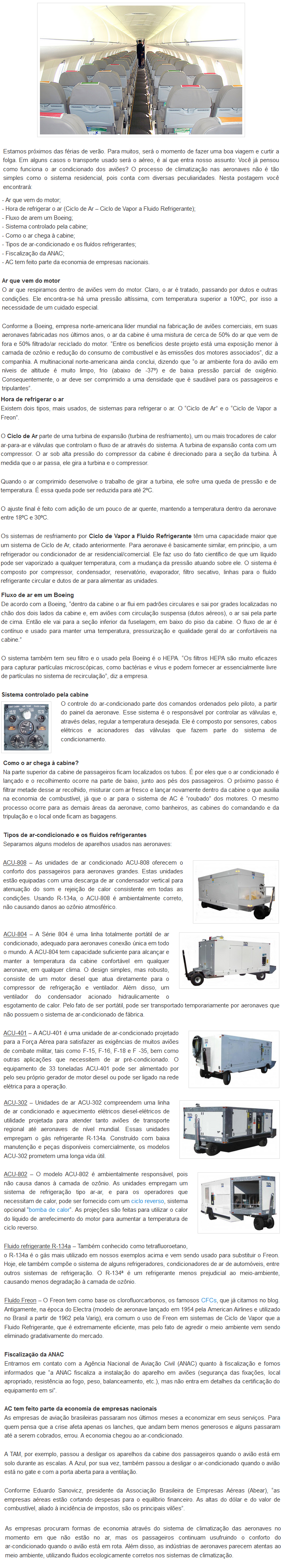 Geral Saiba tudo sobre ar condicionado em aeronaves dezembro 27, 2013agosto 20, 2016 Fernando 0 Comentário aeronaves, ar-condicionado, avião, Blog, climatização 0 Flares Twitter 0 Facebook 0 0 Flares × Texto de Fernando Cunha © Leia também neste siteQuatro tipos de ar veicularArena Corinthians terá climatização no gramadoAche tempo para o seu tempoFamília e escola: os papéis estão bem definidos?Conheça os 100 melhores livros para adolecentes, de acordo com a Revista Time